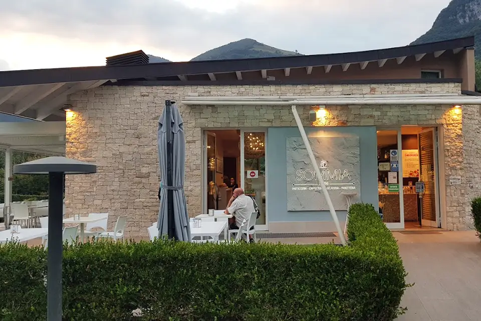 Coffee break alla Pasticceria Sommia, sul Lago d’Endine, in Val Cavallina, per un momento di relax con vista prima della ripartenza del Tour.
